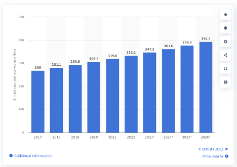 It is estimated that over 340 million emails will be sent and received, every single day, in 2023.