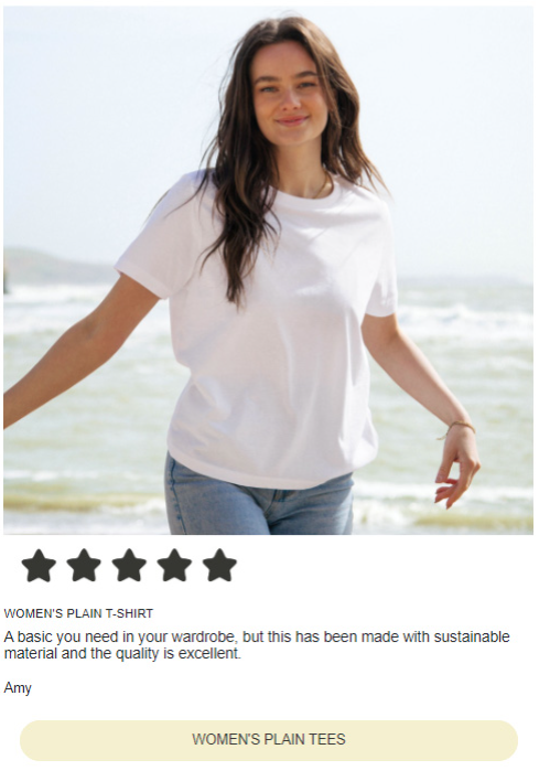 This is particularly effective when paired with audience segmentation and email personalisation, whereby marketers can send relevant emails to subscribers who have shown interest in products, abandoned baskets or purchased similar items previously. Including reviews in these emails adds influence to your messaging, and ultimately encourages them to take action.
