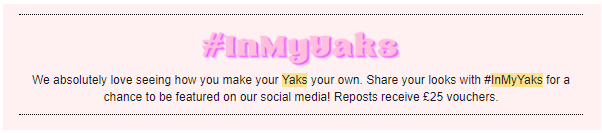 We’ve talked about the power of social media when it comes to collecting UGC, and that’s definitely the primary place for it. But don’t discount email marketing as a channel for collecting and sharing UGC. UK clothing brand Lucy & Yak runs a long-term UGC campaign to collect images of customers wearing their products, and this is often mentioned in email newsletters and promotions to ensure consistent messaging across the board.
